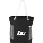 The Rope-It Tote features a large open main compartment with 27 inch double rope handles. It also includes three exterior front pockets – one main slash pocket and two mesh pockets.