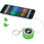 The Orbit Earbud Wrap Key Tag is for using with any standard audio device. Includes a silicone case for earbuds storage, plus a micro cloth screen cleaner for touchscreen devices, a 3.5 mm audio jack and a 43 inch earbuds cable.