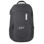Thule Achiever 15" Computer Backpack. The Thule Achiever 15” Computer Backpack is a streamlined 24L backpack with storage for campus essentials, including a 15” laptop and 10.1” tablet. Protect a 15” MacBook /15.6” PC in the padded sleeve with SafeEdge construction and store a 10.1” tablet in a separate protective sleep. Protect your phone, sunglasses or other small valuables in the external, soft-lined, padded pocket. Keep your small electronics and accessories organized in the quick access pocket with zippered compartment, mesh pocket, pen storage and key leash. Keep your water bottle accessible in the side mesh pockets. You can carry this bag in comfort with the padded backpannel with airflow channels or easily grab it and go with the webbing haul handle. Free run charges for embroidery up to 7500 stitches.