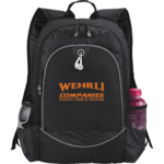 The Hive 15" Computer Backpack features a zippered main compartment that holds your laptop and includes a padded compartment for your iPad® or tablet. Large front zippered pocket has organization and earbud access. Features two side pockets and adjustable backpack straps and carry handle.
