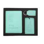 The Vienna 3pc Travel Gift Set includes the 0882-04-Vienna Keychain, 0882-01-Vienna Luggage Tag and the 0882-02-Vienna Passport Wallet. All three items are made from soft Vienna Material.