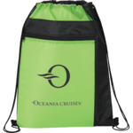 The Color Pop Drawstring Bag has color blocked accents, a large open main compartment with a zippered front pocket and a cinching closure.