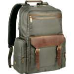 The Cutter & Buck® Bainbridge 15" Computer Backpack is just like the ever-changing weather in the pacific northwest – rich in contrasts. Made of rugged materials like 1680d ballistic polyester, but mixed with rich genuine leather and premium antique brass hardware, it has loads of functional details that make this a bag that looks good, and never disappoints. The dedicated laptop pocket protects up to a 15.6 inch computer while the large main compartment includes a pocket for your files, books, or padfolio. The front pocket includes deluxe organization for your pens, business cards, flash drives, power bank and other accessories. A rear padded adjustable shoulder straps and deluxe trolley sleeve, as well as the custom high-quality lining gives a premium feel inside and out.