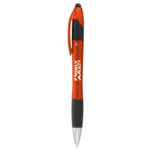 The Tempo Multi-Ink Ballpoint Pen-Stylus features a twist-action ballpoint pen featuring three ink color options black, blue or red. It also includes a soft rubber stylus for touchscreen devices.