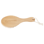 The Bamboo Massaging Hair Brush is an oval handle brush with soft rounded bristles that provide a gentle massage for your scalp. Great for detangling or for use on wet hair. Includes cotton rope accessory to hang dry. Be sure to allow brush to dry completely after use for longest life. Due to the nature of bamboo material, variations in color will occur. Leed's Exclusive.
