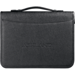 Zippered closure. Interior organizer with gusseted file pocket. 1" metal three-ring binder. Includes 8.5" x 11" writing pad. Refills available at leedsworldrefill. Refill item number 9091-01. Pen not included.