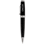 High gloss black enamel upper barrel with carbon fiber detailing in lower barrel. Highlighted with chrome accents. Twist action mechanism. Pen includes premium black ink cartridge.