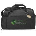 The AFT Recycled 21" Duffel is ready to travel with you whether it's on vacation, to the gym, or office. This duffel features a roomy zippered main compartment for all your essentials. Get extra storage with the side zippered shoe compartment, two zippered front pockets, and side water bottle pocket. Carry with ease with the adjustable, removeable shoulder strap, and the padded grab handle. This duffel is made from recycled water bottles. Through a partnership with 1% For The Planet, one percent of sales of this and all EcoSmart products will be donated to nonprofits dedicated to protecting the planet.